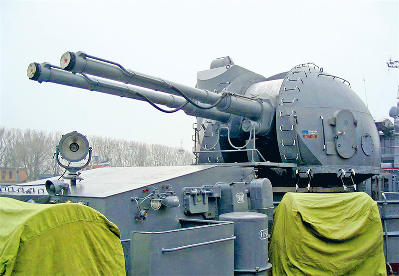 俄制AK-130双管舰炮。