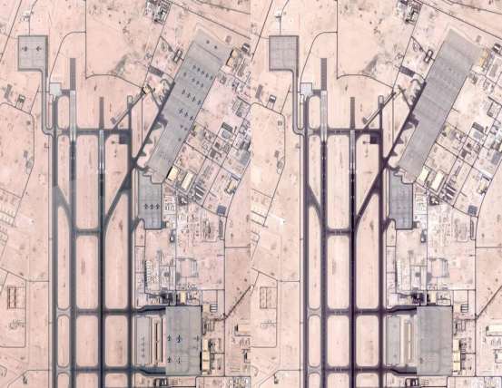 2025年6月5日(左)和6月19日(右)美军乌代德空军基地卫星图像 图源:外媒报道配图