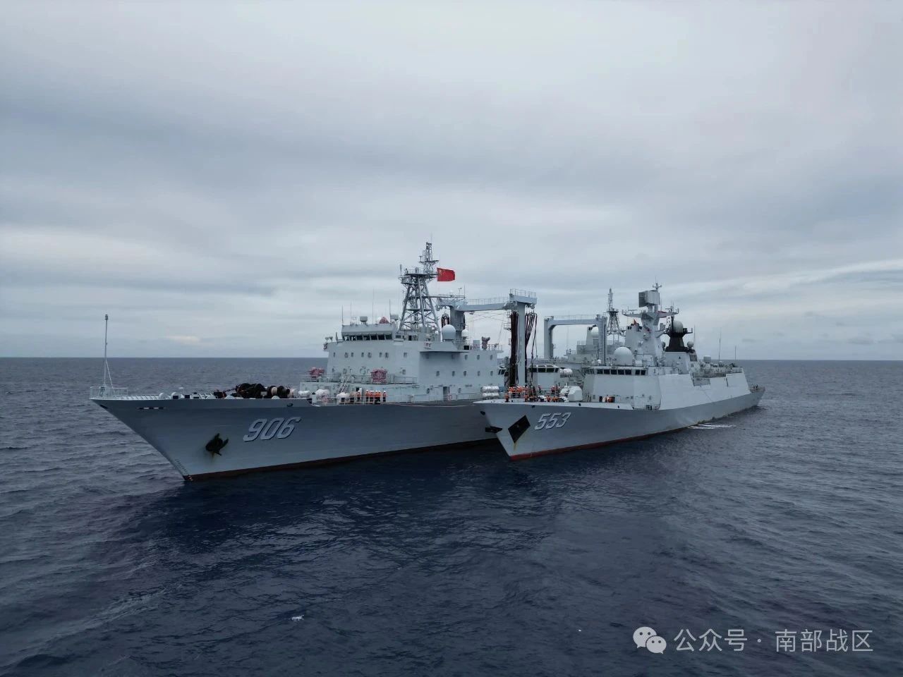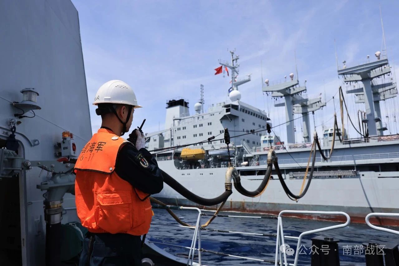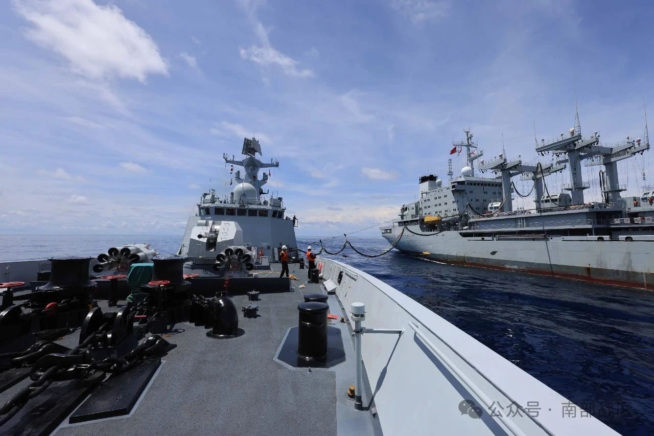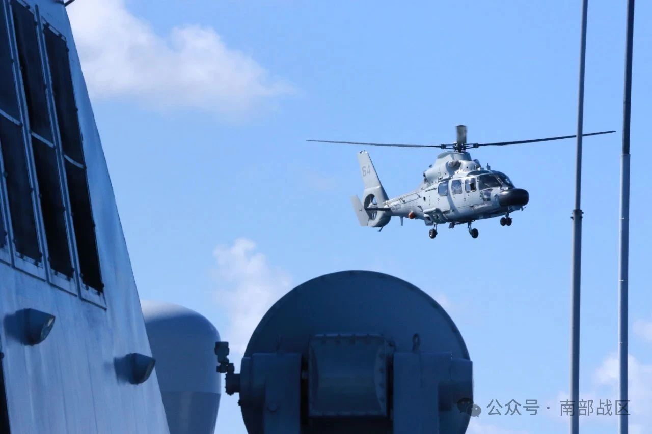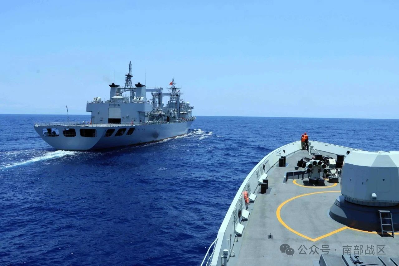 近日,南海某海域,海军大理舰协同洪湖舰展开海上应急补给、舰机协同等多课目训练,锤炼了部队实战能力。(蔡盛秋、方智坤、吕戈 )
