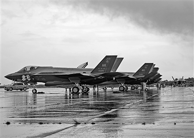 参加“部队重返太平洋”演习的美国空军F-35A战斗机在关岛机场停机坪列阵。资料图片