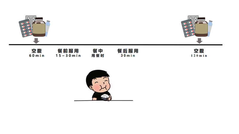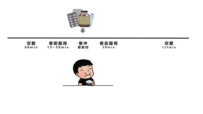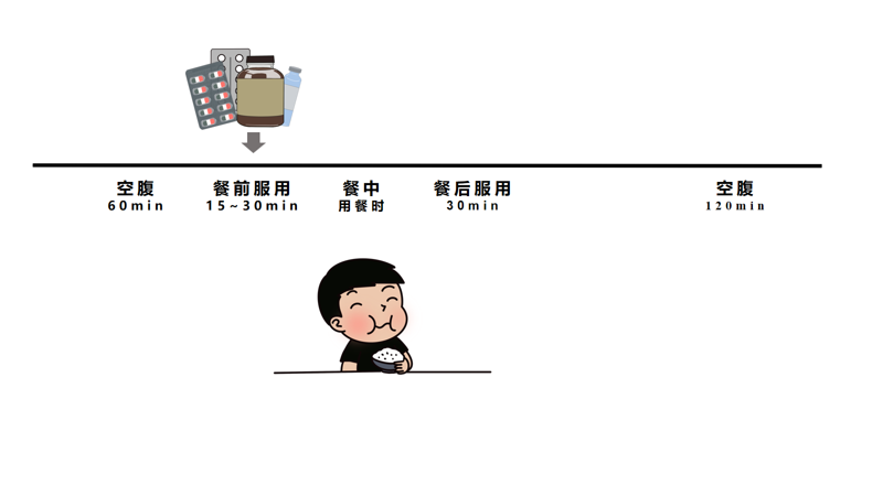二甲双胍(普通片剂):由于服用二甲双胍时,常见恶心、呕吐、腹泻等消化系统不良反应,随餐服用可以在不影响吸收的同时,显著减少这些副作用发生。