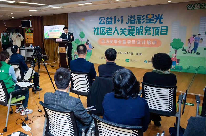 3月17日,由北京市社会组织发展服务中心(简称:发展服务中心)及其运营方北京市协作者社会工作发展中心(简称:北京协作者)和北京泰康溢彩公益基金会(简称:泰康溢彩基金会)联合发起的“公益1+1之溢彩星光社区老人关爱服务项目启动发布会暨项目设计培训”召开。会上北京市社会组织管理中心书记许伟宣布“公益1+1”之溢彩星光资助行动正式启动。泰康溢彩基金会将资助100万元支持北京市及雄安新区的社会服务机构开展社区老人关爱服务项目,推动社区养老服务模式的创新,发展服务中心及北京协作者则为社会服务机构提供全过程的支持性监测,保障项目实施质量,提升入围机构的项目管理与服务能力。