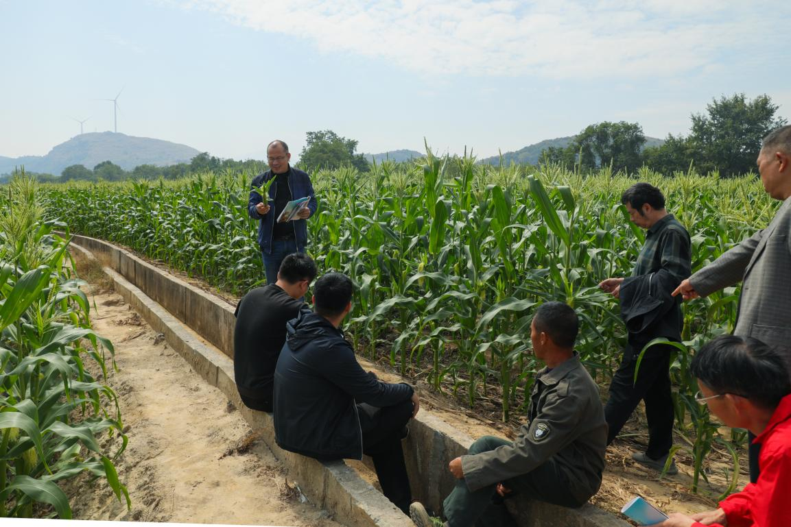 为实现玉米质优高产,工作队请来了江华县县农业局的科技人员,针对种植品种为村民讲授种植技术要点,解答病虫害防治等管理问题 朱辉峰摄