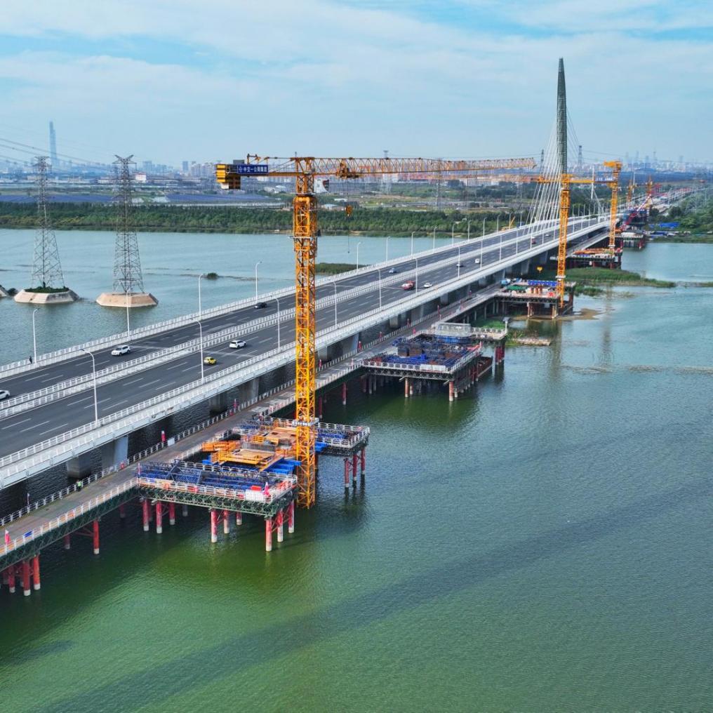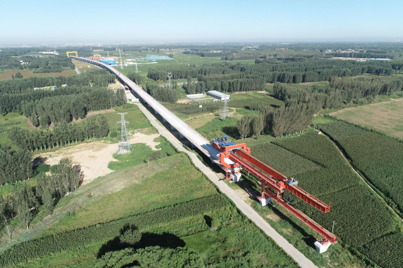 津静市域(郊)铁路首开段关键控制工程——跨独流减河大桥工程施工现场。