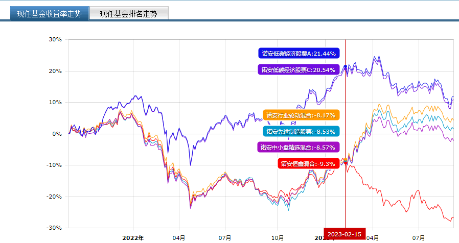 无独有偶,韩冬燕独管的股票型基金诺安先进制造股票,同类排名高居12位,年内收益接近20%,而其共管的诺安低碳经济股票A/C年内收益分别为0.35%和0.04%,同类排名分别为186|845和195|845。