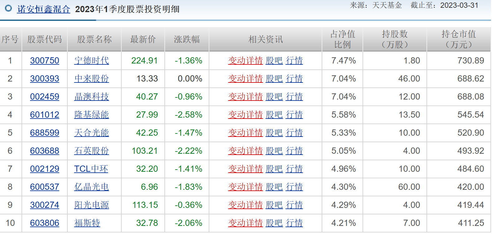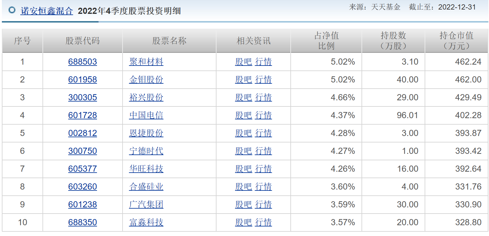 共管混合型-偏股基金诺安恒鑫混合在2022年3季度、4季度投票投资明细