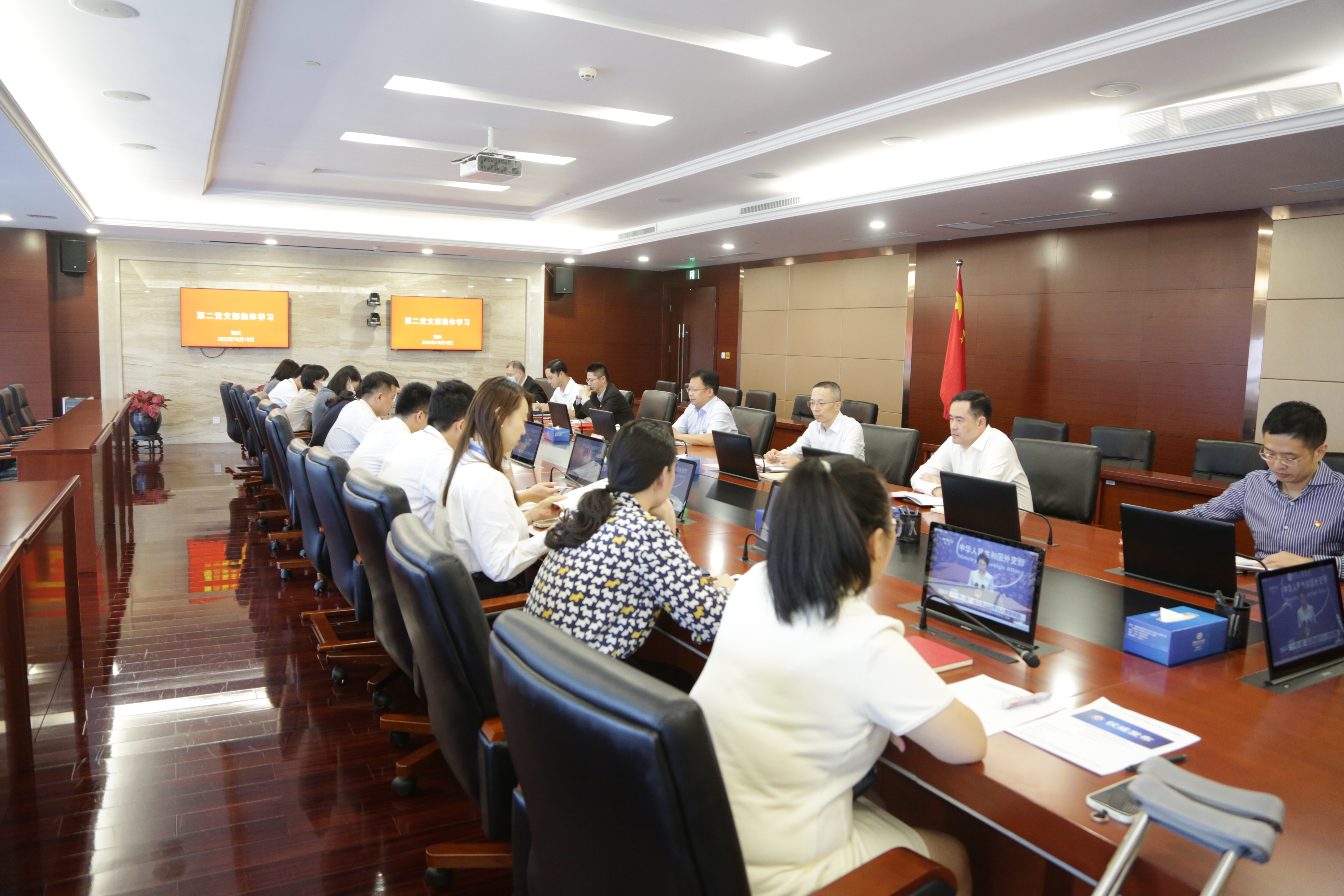10月18日,进出口银行福建省分行第二党支部组织全体党员召开第三届“一带一路”国际合作高峰论坛专题学习,分行党委书记、行长许波,分行党委委员、副行长林育浩以普通党员身份参加本次支部学习。