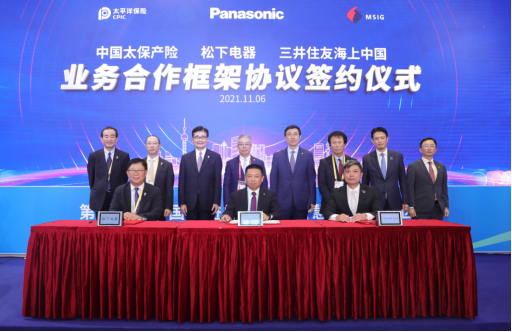 2021年11月6日,中国太保旗下中国太保产险、松下电器(中国)有限公司(以下简称:松下电器)及三井住友海上中国在第四届中国国际进口博览会上签订合作协议,三方旨在为新能源汽车市场提供创新保险产品服务,进一步推动新能源汽车在中国的普及,为实现低碳减排社会做出贡献。