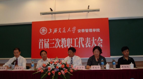 学院始终紧密团结和牢牢依靠全院教职工开展工作,注重加强思想引领和服务保障,图为2004年9月上海交通大学安泰管理学院首届三次教职工代表大会。