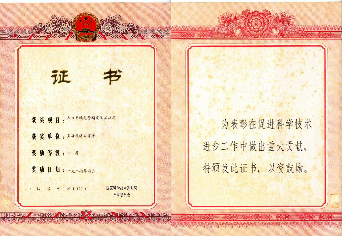 1987年7月,上海交通大学管理学院王浣尘教授主持的“人口系统定量研究及其应用”项目获国家科学技术进步奖一等奖。