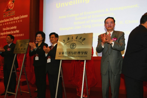 为更好适应学科建设发展需要,学院创新下设经济、管理两个学院并更名为“上海交通大学安泰经济与管理学院”,形成了“以管理支持经济、以经济滋养管理”的全新发展格局,图为2006年3月上海交通大学安泰经济与管理学院揭牌仪式。