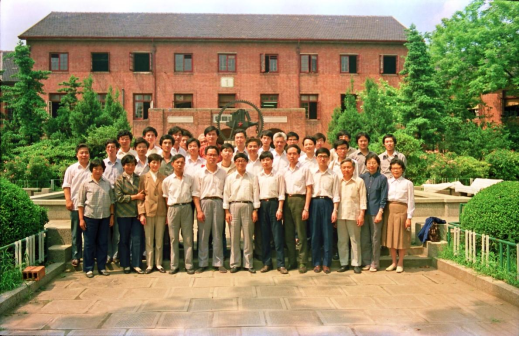 1986年,上海交通大学管理学院部分教师在徐汇校区原办公楼(现执信西斋)前的合影。