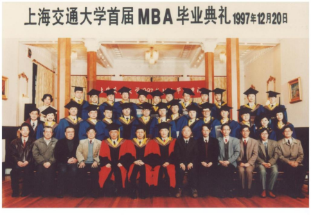 1997年,MBA招生开始实行全国联考,上海交通大学管理学院MBA的招生规模从最初的30人跃升至200人,自此迅速进入并保持全国高校前列,图为1997年12月上海交通大学首届MBA毕业典礼。