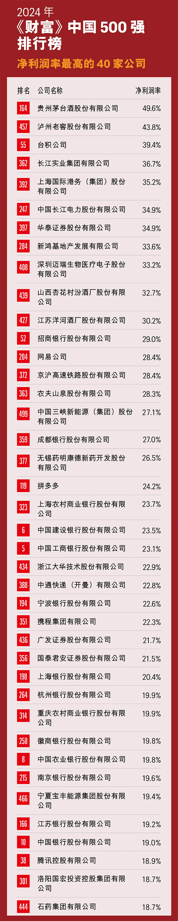 据悉,2024年《财富》中国500强净利润率最高的40家公司(子榜)中,有14家银行机构上榜。