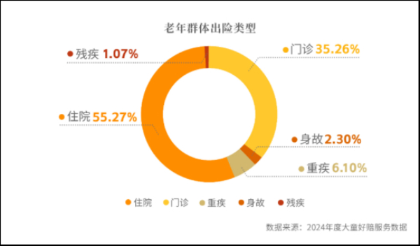 2024年,大童好赔协助2.5万人完成医疗理赔,赔付金额达1.5亿元。从理赔类型分布来看,住院及门诊类医疗案件占比高达91.17%,理赔频率极高。这一数据与行业整体情况相契合,医疗险理赔呈现出“高频低额”的显著特征。因此医疗险在日常生活中是最有可能用到的保险类型之一,应优先考虑配置。