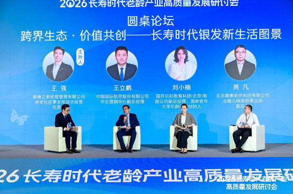 泰康之家养老社区事业部销售管理部综合经营负责人王强主持了以“跨界生态·价值共创——长寿时代银发新生活图景”为题的圆桌论坛。