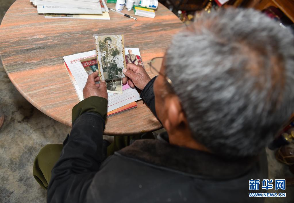 4月1日,赵贤军在泗县大杨乡的家中回顾曾经入伍时的老照片。新华社记者 韩旭 摄