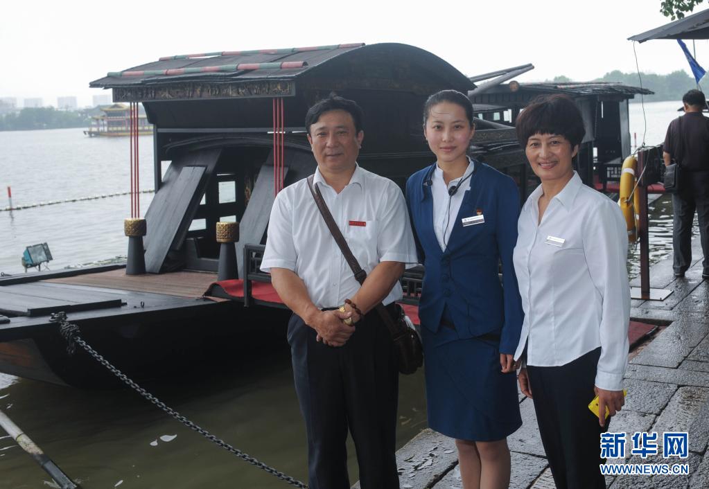 张一(中)和父亲张新志、母亲徐金巧在红船边合影(2012年6月28日摄)。新华社记者 韩传号 摄