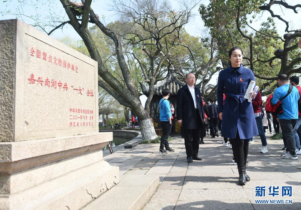 3月25日,张一(前)走在嘉兴南湖湖心岛上。新华社记者 韩传号 摄