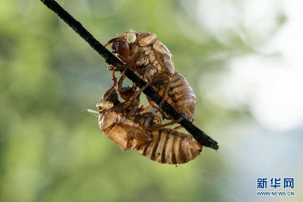 这是5月19日在美国弗吉尼亚州阿灵顿拍摄的17年蝉的蝉蜕。