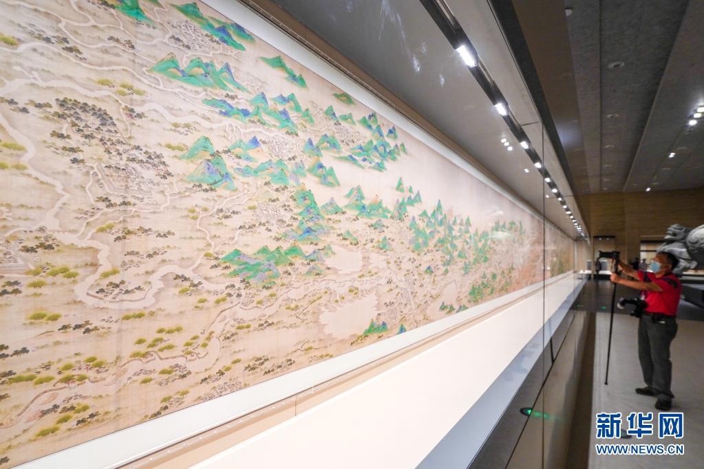 6月16日,参观者在扬州中国大运河博物馆内参观“京杭道里图”(复制)。