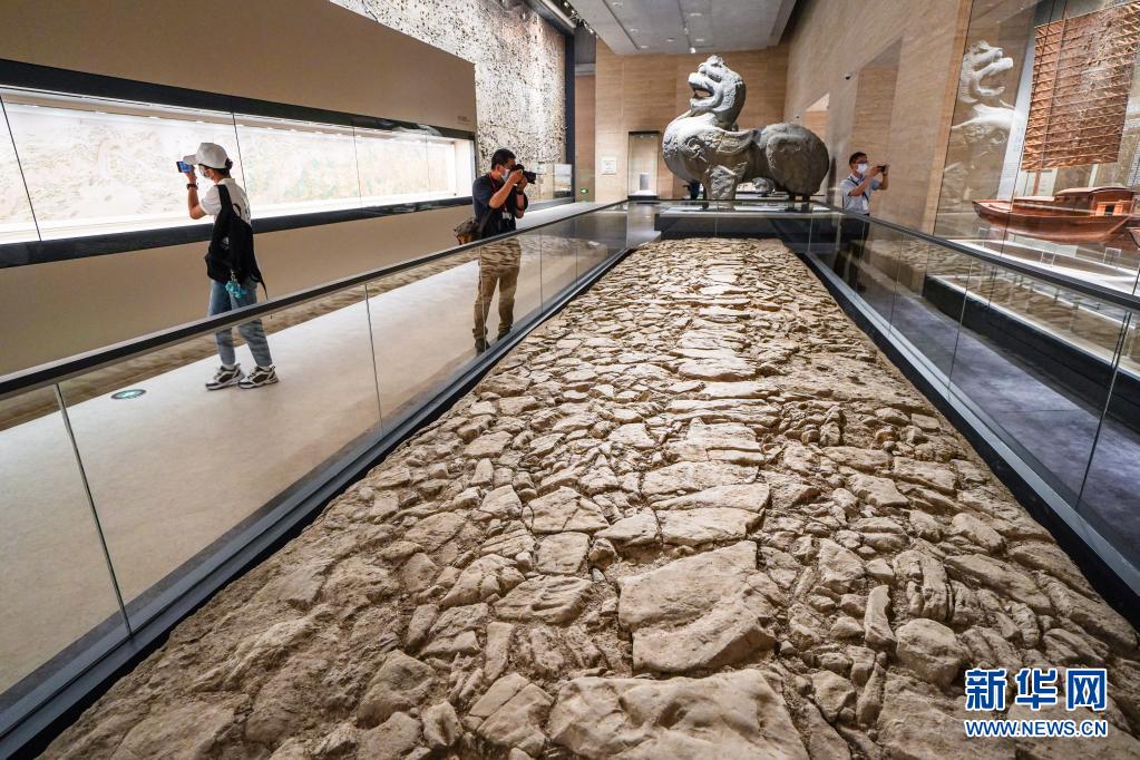 6月16日,参观者在扬州中国大运河博物馆内参观清朝“石铺路”。