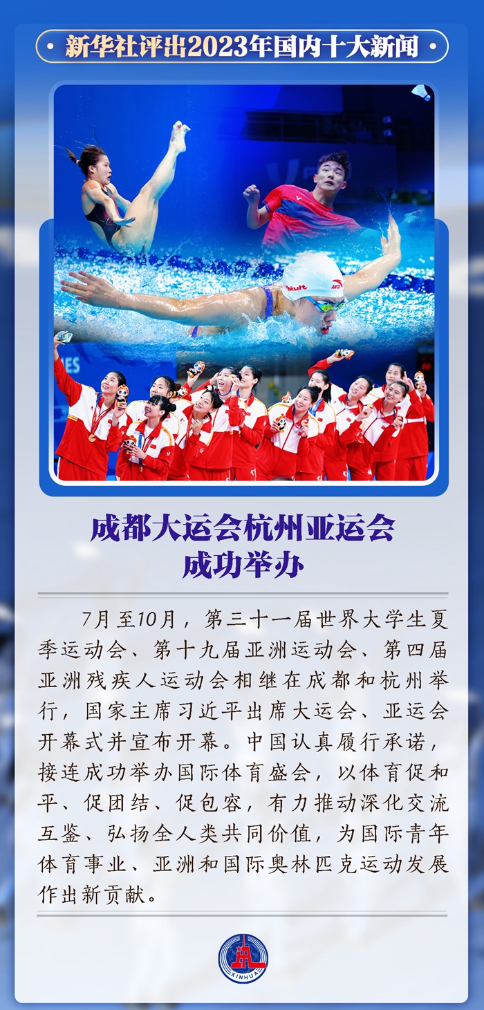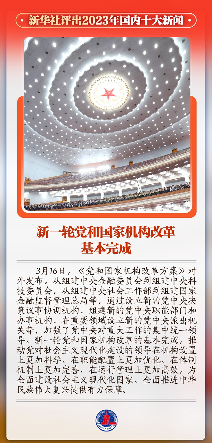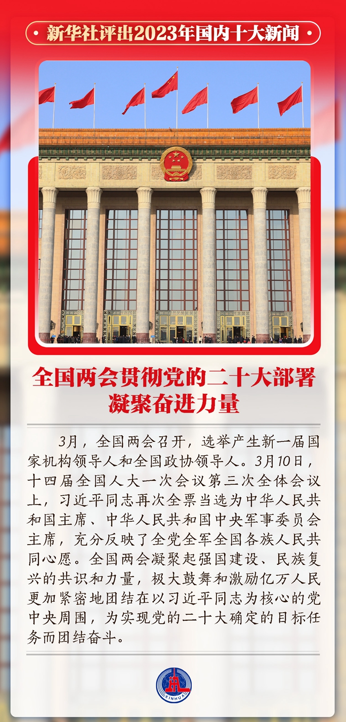 新华社北京12月29日电 新华社评出2023年国内十大新闻(按事件发生时间先后为序)