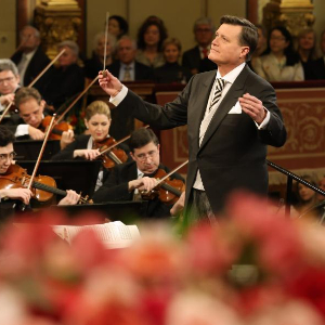 1月1日,在奥地利维也纳金色大厅,指挥家克里斯蒂安·蒂勒曼指挥维也纳爱乐乐团演奏。