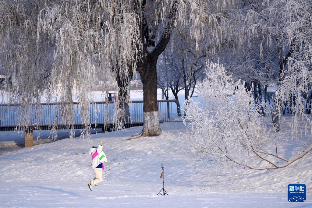 1月3日,市民在哈尔滨市湘江公园拍摄雾凇景观。
