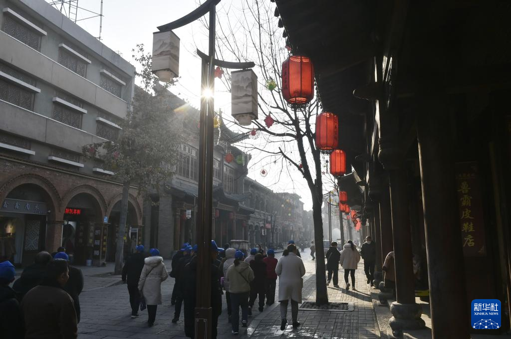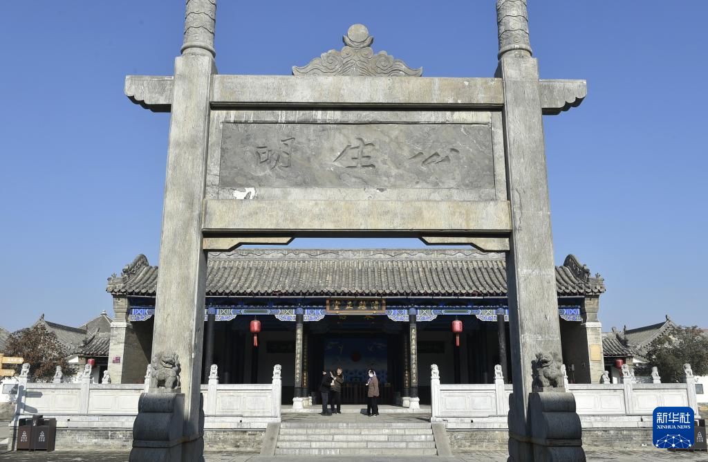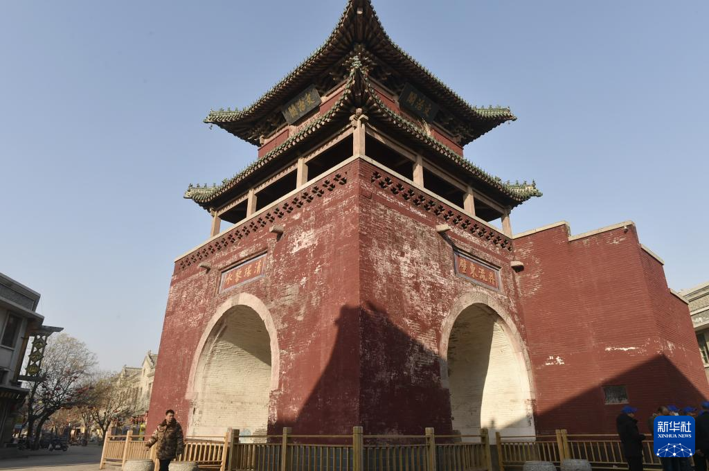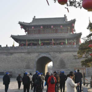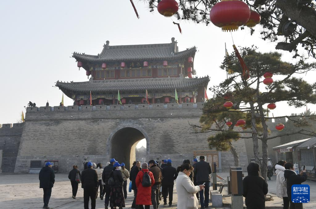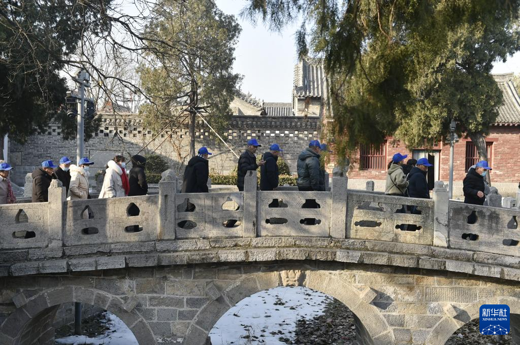1月6日,游客在浚县古城的土圆粮仓内游览。