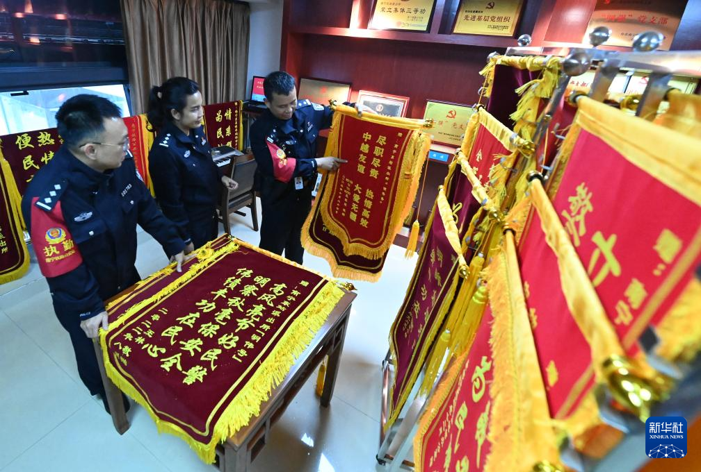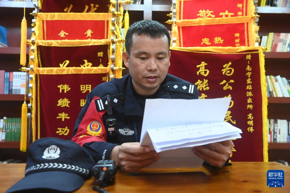1月8日,高明伟在南宁东站派出所阅读旅客送来的感谢信。