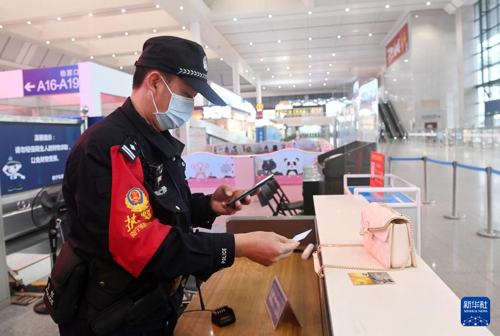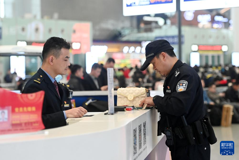 1月8日,高明伟在南宁东站检查一名旅客遗失背包里的物件。