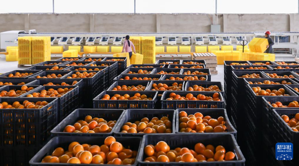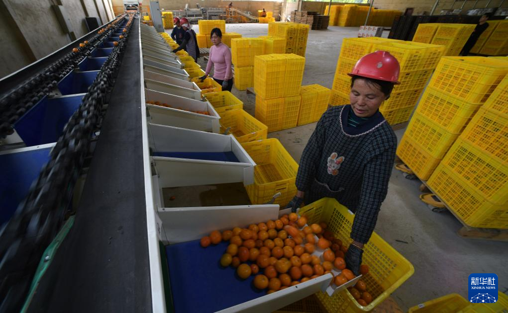 1月31日,村民在贵州省罗甸县木引镇水果基地生产车间分拣刚采摘的沃柑。