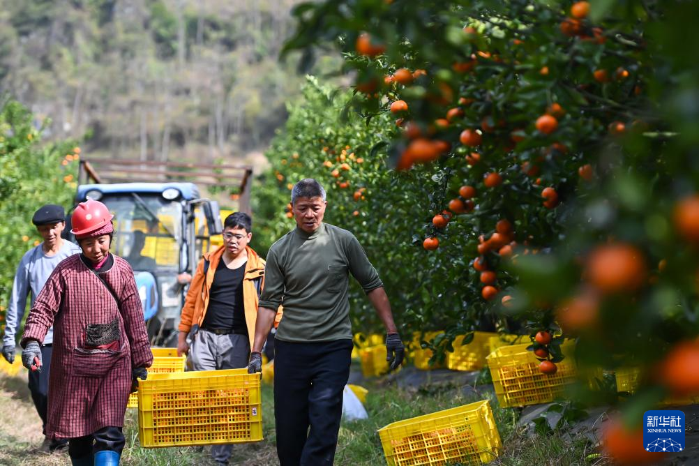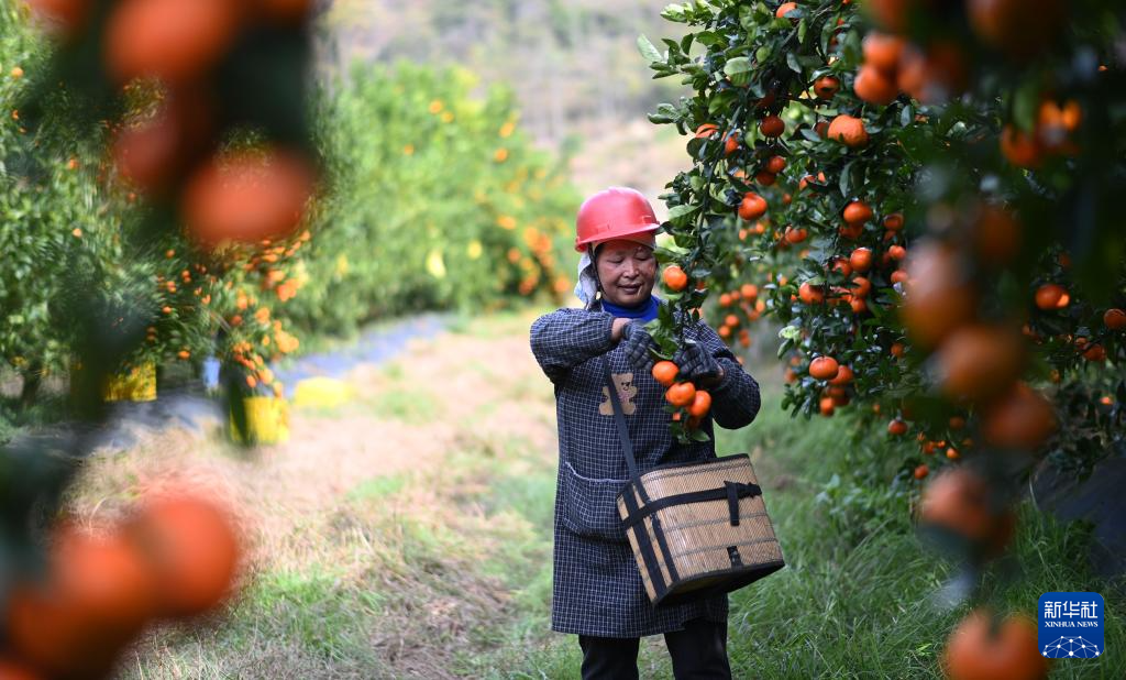 1月31日,村民在贵州省罗甸县木引镇水果基地采摘红橘。