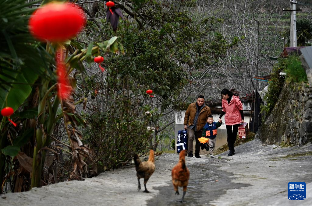 2月6日18时许,在北京开餐厅的张红径回到他的家乡——云南省大理白族自治州南涧彝族自治县公郎镇沙乐村,他的妻儿到村口迎接。