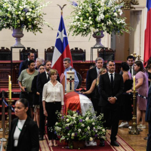 2月7日,智利前总统皮涅拉的遗体运抵位于圣地亚哥的旧国会大厦,接受吊唁。