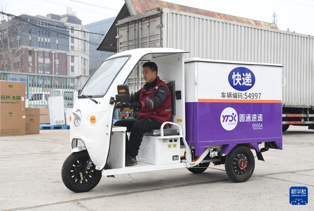 2月18日,圆通速递工作人员张亚超在北京市海淀区北太平庄街道的一处快递点出发送快递。