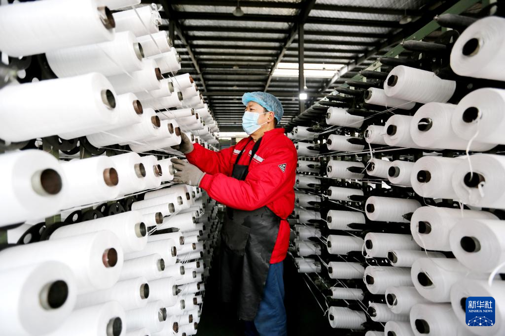 2月18日,工人在江苏省连云港市连云区一家纺织企业忙碌。