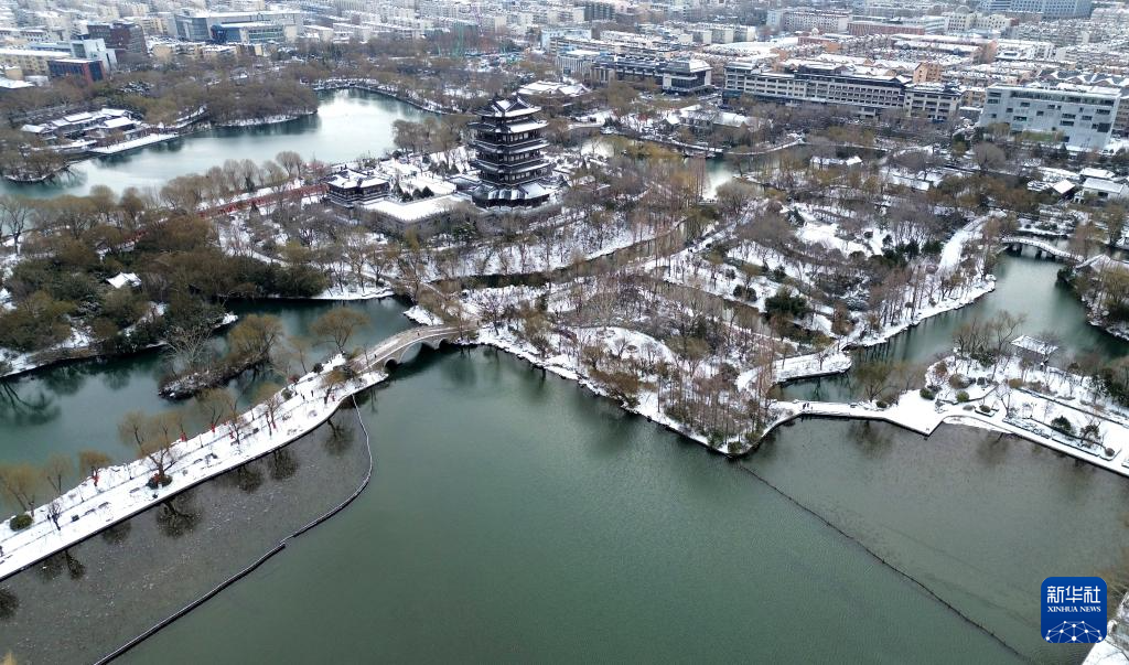 2月22日拍摄的雪后大明湖(无人机照片)。