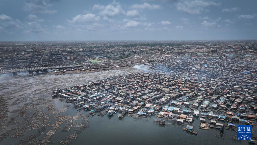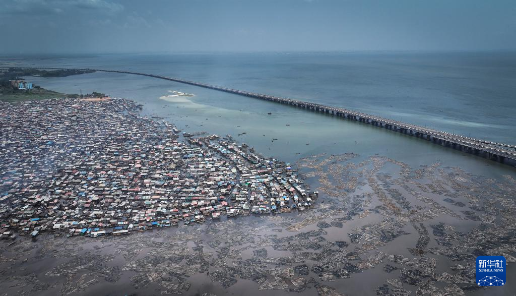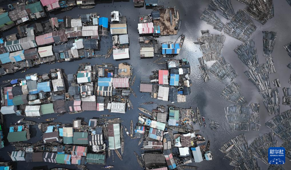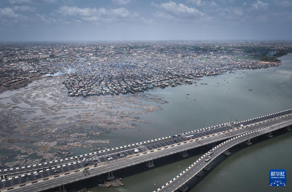 这是3月2日在尼日利亚拉各斯拍摄的马科科贫民窟一隅(无人机照片)。