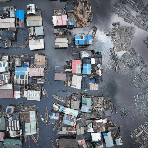 马科科贫民窟位于尼日利亚最大城市拉各斯,主要由在水上搭建的高脚棚屋组成。