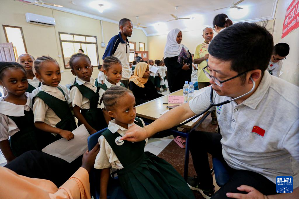 3月6日,第33期中国援桑给巴尔医疗队在坦桑尼亚桑给巴尔一社区幼儿园开展健康义诊活动。