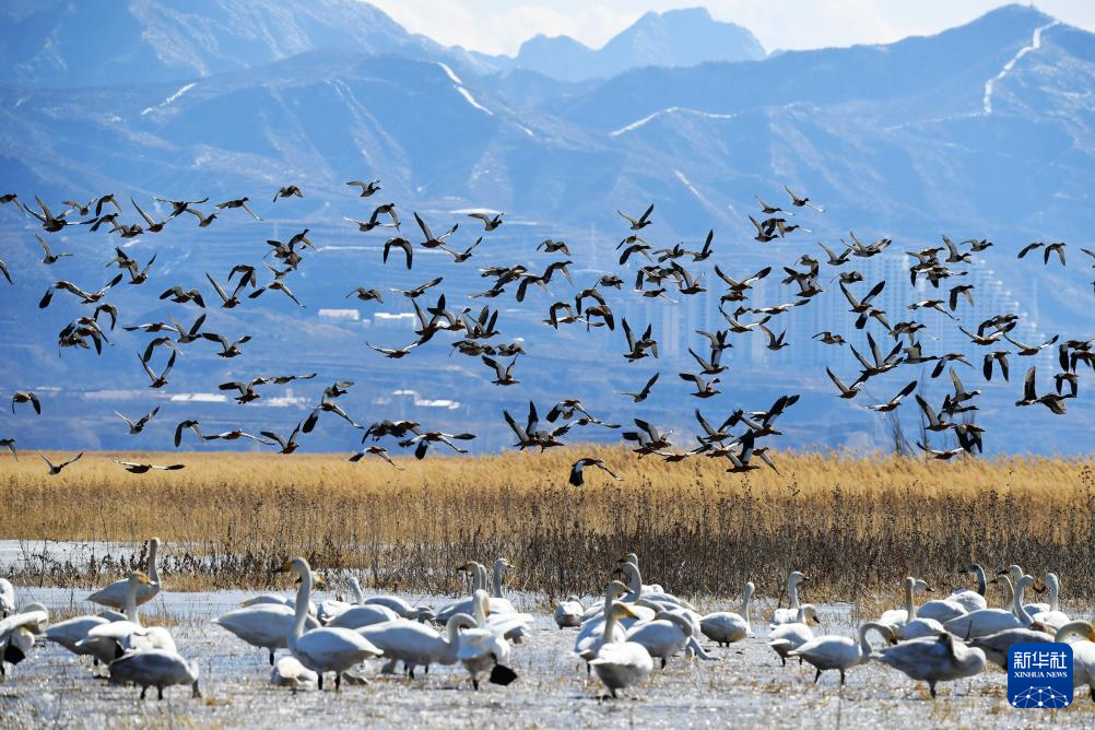 近年来,河北怀来通过生态补水、退耕还湿等举措,修复官厅水库生态系统,湿地生态环境不断改善,野生鸟类种群数量显著提升,“飞鸟成云”经常可见。