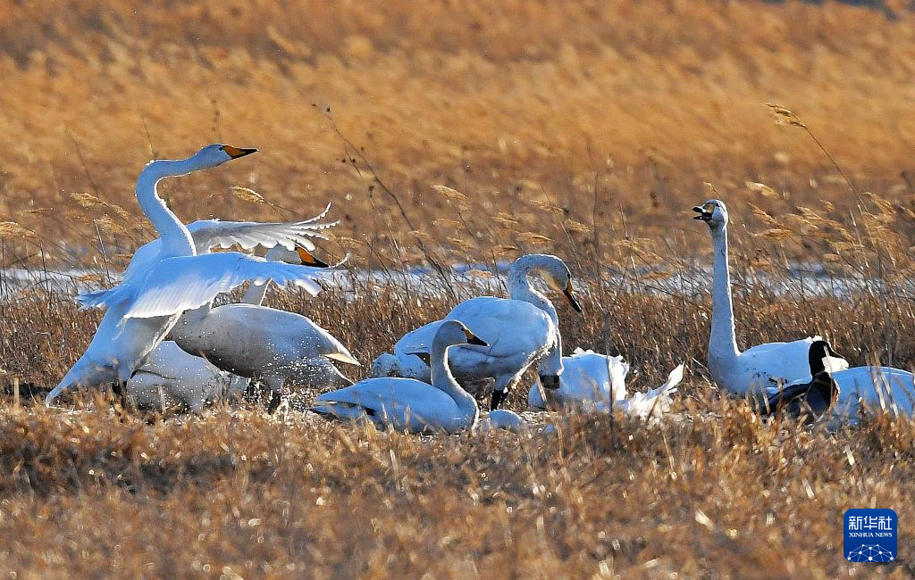 这是3月5日在河北怀来官厅水库国家湿地公园拍摄的天鹅。