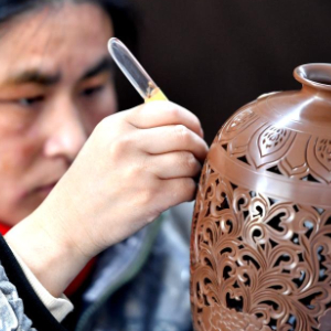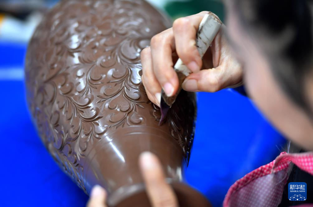 近年来,河北省邯郸市馆陶县把传承非遗和乡村振兴相结合,采用“非遗+企业+农户”的模式,推进黑陶制作技艺的传承,打造特色黑陶文化产业集群。目前,馆陶县黑陶产品涉及1000多个品种,带动村民家门口就业,助推乡村振兴。
