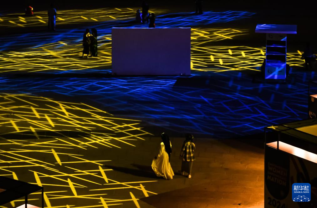 这是2月18日在埃塞俄比亚首都亚的斯亚贝巴友谊广场拍摄的光影秀。
