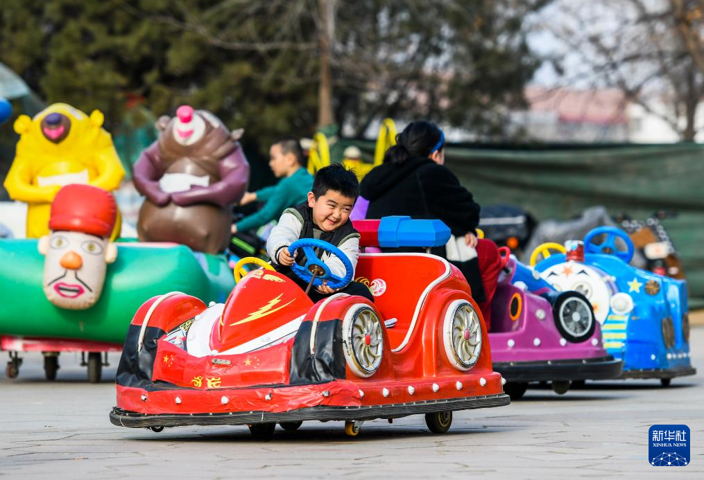 3月16日,小朋友在河北省遵化市一公园玩耍。