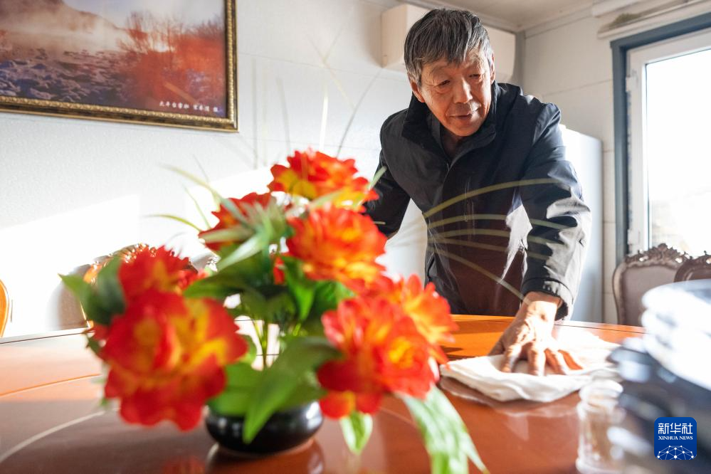 3月13日,在伊春市友好区,伊春森工集团上甘岭林业局公司溪水林场分公司退休职工刘养顺在自家农家院中打扫卫生。2023年,刘养顺扩大农家院经营规模,年增收十余万元。