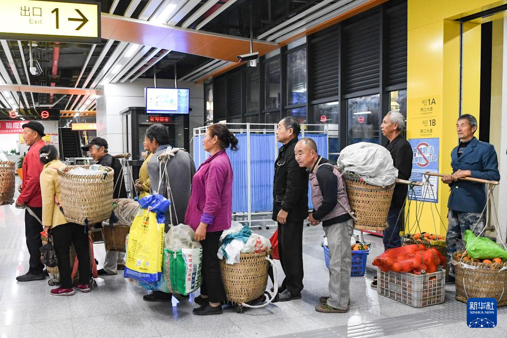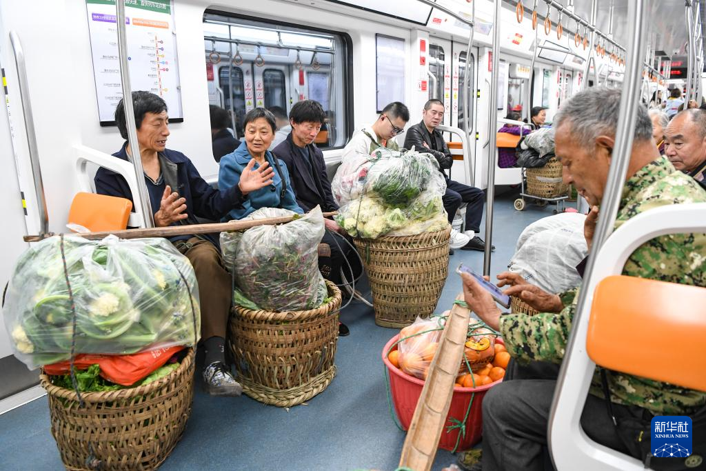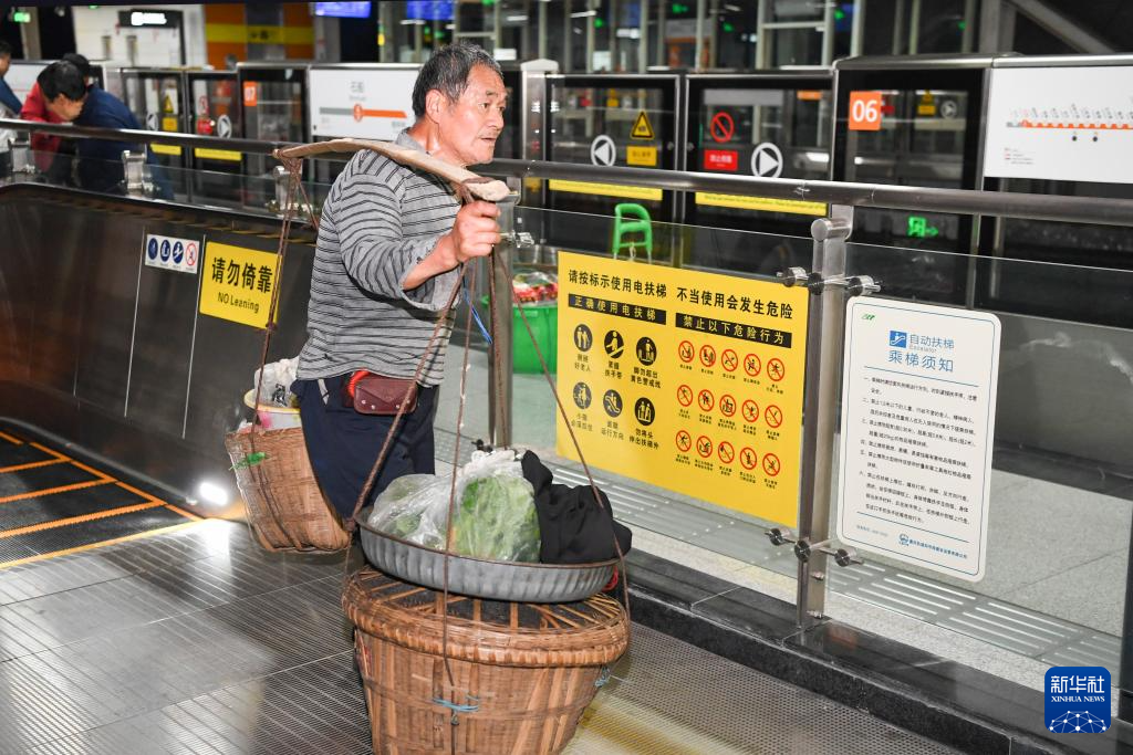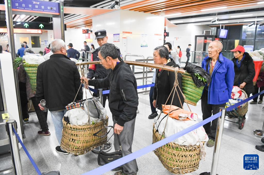 为方便菜农,地铁站工作人员会提供力所能及的帮助:提前打开闸门,引导菜农乘坐升降电梯,引导他们快速有序进站,用手持金属探测仪为他们安检……菜农们乘坐“背篓专线”,去城区各大菜市场。不少菜市场专门设置“农民背篼菜区”,为菜农们售卖农产品提供便利。