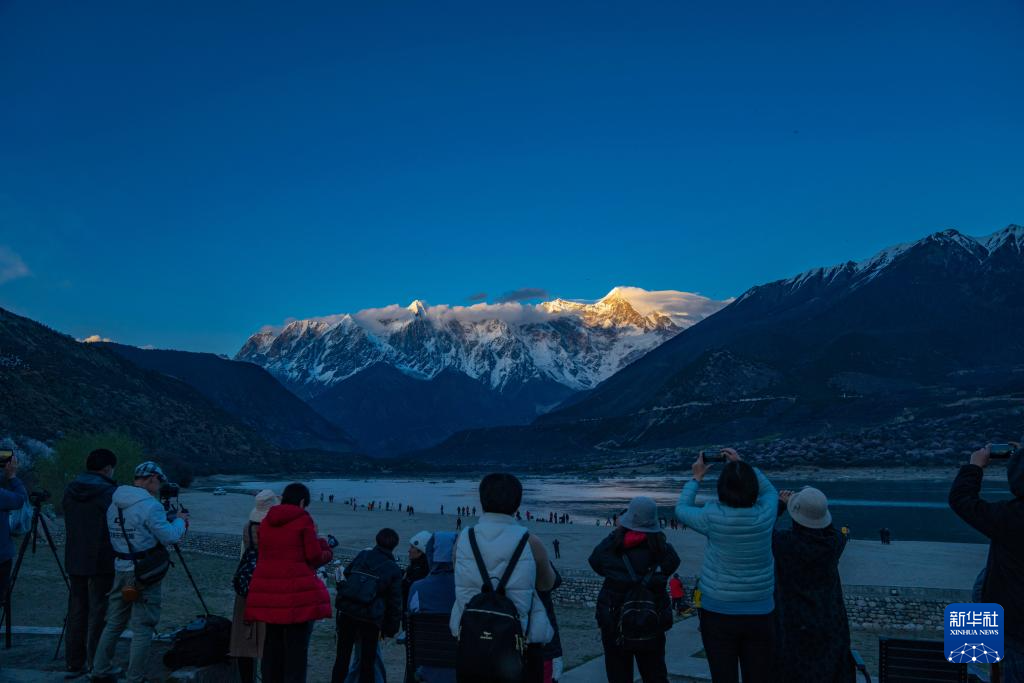 西藏林芝市米林市索松村是欣赏南迦巴瓦峰景观的最佳位置之一。这里面向南迦巴瓦峰,脚下是蜿蜒的雅鲁藏布江。林芝市第二十一届桃花旅游文化节期间,雅鲁藏布江边的桃花次第盛开,与雪山、大江相衬,独特的景色吸引着各地游客慕名而来,共赴一场“桃花之约”。
